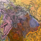 Un inusual y colorido diseño de arte abstracto de una oveja.