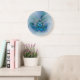 Reloj Redondo Grande Ovejas en pie, abstracto fractal turquesa azul