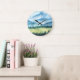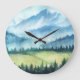 Reloj Redondo Grande Paisaje montañoso, acuarela ilustrativa artística