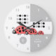 Reloj gris y blanco, adorable con pájaros ladinos rojos y negros, para una habitación infantil, decoración infantil. Personaliza con un nombre. Idea de regalo.