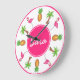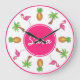 Reloj Redondo Grande Palm Tree Pineapple Isla Tropical Rosa Flamingo