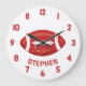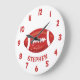 Reloj grande de pared de dormitorio de fútbol para niños rojos lindos. Personalice este diseño personalizado con su propio nombre o texto.