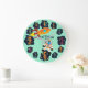 Agrega un nombre y título a este reloj de pared con tema de viaje espacial para niños o niñas. Cuenta con números divertidos con alienígenas, cohetes, astronautas y planetas.