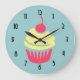 Reloj Redondo Grande Pastel rosa y amarillo con cereza en la parte supe