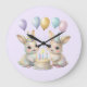 Reloj Redondo Grande Pastel Whimsical Bunny Twins Birthday wall clock