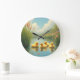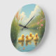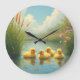 Reloj Redondo Grande patitos lindos en estanque con flores
