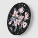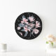 Reloj Redondo Grande Patrón de acuarela floral rosa y gris