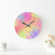 Reloj Redondo Grande Patrón de arte de polígono azul púrpura rosa Lime