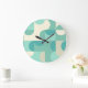 Reloj Redondo Grande Patrón de arte Retro Verde Azul Verde azulado