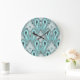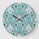 Reloj Redondo Grande Patrón de arte tribal de la turquesa de Aqua Turqu