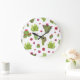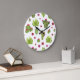 Reloj Redondo Grande Patrón de cactus verde pintado a mano