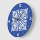 Reloj Redondo Grande Patrón de damasco de Ikat - azul cobalto y blanco