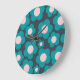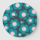 Reloj Redondo Grande Patrón de flor hippie azul precoz
