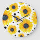 Reloj Redondo Grande Patrón de fondo blanco de girasoles amarillos