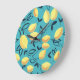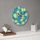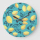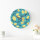 Reloj Redondo Grande Patrón de gouache de limón amarillo sobre turquesa