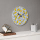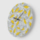 Reloj Redondo Grande Patrón de hoja gris y amarillo.
