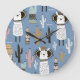 Reloj Redondo Grande Patrón de Llama, Cactus, Elementos dibujados a man