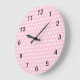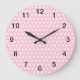Reloj Redondo Grande Patrón de puntos de polka rosa y blanco.