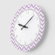 Reloj Redondo Grande Patrón de rayas de zigzag de Lavender