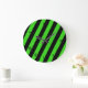 Reloj Redondo Grande Patrón de rayas diagonales verdes y negros