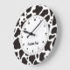 Patrón de fondo de vaca sin soldadura en blanco y negro. Color de fondo personalizado. Texto personalizado.