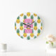 Reloj Redondo Grande Patrón de verano de piñas de buenas vibraciones