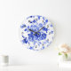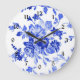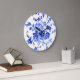 Reloj Redondo Grande Patrón floral azul decorativo