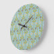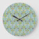 Reloj Redondo Grande Patrón floral folclórico retro verde y azul cúbico