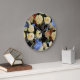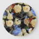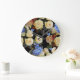 Reloj Redondo Grande Patrón floral moderno, rosas blancas, hidrangea az