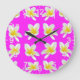 Reloj Redondo Grande Patrón Frangipani Rosado Y Amarillo Caliente,