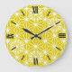 Reloj Redondo Grande Patrón japonés de Asanoha - oro mostaza y blanco