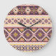 Reloj Redondo Grande Patrón tribal azteca rayado, geométrico.