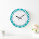 Reloj Redondo Grande Peacock Teal Quatrefoil Pattern