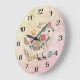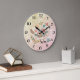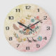 Reloj Redondo Grande Pequeño pájaro deja flores muros rosados