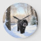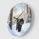 Reloj Redondo Grande Perro acuático portugués deja que nieve Navidades