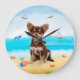Reloj Redondo Grande Perro Chihuahua en la playa