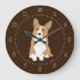 Un lindo perro Corgi rojo y blanco adorna el frente de este reloj. Son un perro pastor y son inteligentes, salientes y afectuosos. Un gran perro familiar.