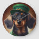 Reloj Redondo Grande Perro de Dachshund con vestido de San Patricio