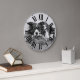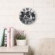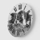Este Reloj Grande de Perro Hermoso Border Collie presenta una fantástica foto en blanco y negro de un hermoso perro border collie acostado en un tronco de árbol. Una adición perfecta para el hogar de cualquier amante de los perros. Imagen exclusiva de Zazzle y no se puede encontrar en ningún otro lugar!. © Dafydd's Designs.