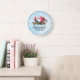 El tiempo es muy elegante con este encantador reloj de pared de la sala de costura. Con una máquina de coser rosa vintage muy bien ilustrada, rodeada de delicados acentos florales sobre un suave fondo azul acuático, este reloj le da un toque creativo a cualquier habitación de artesanía. Personalízalo con su nombre o negocio para una perfecta decoración personalizado. Un regalo para los amantes de la costura, los edredones, los diseñadores de moda o las almas artesanales. Ideal para costura de estudios, espacios de trabajo en casa o como un regalo único a mano.