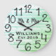 Hermoso, único y personalizado diseño presenta sus nombres personalizados en negro en una fuente de escritura superpuesta y el apellido y año establecido en una escritura en negrita con un fondo de madera gris desgastado. Personalice este reloj agregando su información personal. Es un regalo ideal para bodas, aniversarios o inauguración de una casa. Haga clic en "personalizar esta plantilla" para cambiar los nombres, fuentes y colores para crear un diseño único. Qué accesorio elegante y rústico para su sala, dormitorio o sala familiar. Si necesita ayuda con la personalización, por favor envíeme un correo electrónico a ybnormalone @gmail.com. Gracias por visitar www.zazzle.com/Personal_Creations. ©Karen Hall para Personal_Creations en Zazzle.