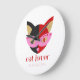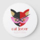 Este gatito adorable con colores negros, rojos, rosados y purpurinas dorados y gafas estrelladas le da un toque alegre y moderno a su reloj redondo acrílico. El texto "Cat Lover" está escrito en rojo en una fuente decorativa muy original. Añadimos una línea complementaria con un nombre de personalizable escrito en un elegante tipo de letra con puntos rojos. Por favor, reemplace el nombre predeterminado con el suyo o no dude en borrarlo.