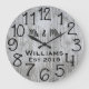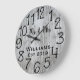 Hermoso, único y personalizado diseño que presenta sus nombres en negro en una fuente de escritura superpuesta y el apellido y año de establecimiento en una escritura en negrita con un fondo de madera gris. Personalice este reloj agregando su información personal. Es un regalo ideal para bodas, aniversarios o inauguración de hogar. Haga clic en "personalizar esta plantilla" para cambiar los nombres, fuentes y colores para crear un diseño único. Qué accesorio elegante y rústico para su sala, dormitorio o sala familiar. Si necesita ayuda con la personalización, por favor envíeme un correo electrónico a ybnormalone @gmail.com. Gracias por visitar www.zazzle.com/Personal_Creations. ©Karen Hall para Personal_Creations en Zazzle.