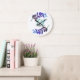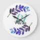 Reloj Redondo Grande personalizado simple hojas negras púrpura azul agr