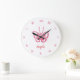 Reloj Redondo Grande Personalizar Nombre Chicas de mariposas rosadas