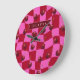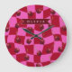 Reloj Redondo Grande Personalized Cherry Gingham Retro Custom Name
