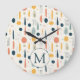 Personalized Minimal Abstract Boho Pastel Colors Pattern large Wall Clock. A trendy and aesthetic wall clock featuring a beautiful minimal abstract design in soft boho pastel colors. Perfect for living room, bedroom, or office decor. A great housewarming or gift for her. Customize with your name or monogram to make it uniquely yours.