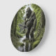 Arte de Ai representando a Sasquatch parado en un río que atraviesa el bosque.