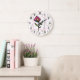 Reloj Redondo Grande Pink and Green Long Stem Wildflowers Personalized
