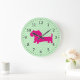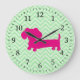 Reloj Redondo Grande Pink & Green Dachshund Wall Clock
